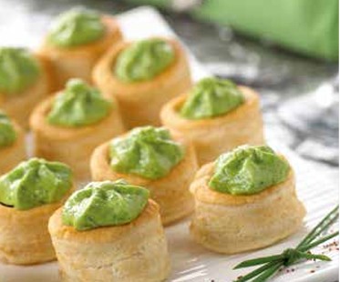 Petit bouchée feuilletée accompagnée d’un escargot et de son beurre a l’ail.